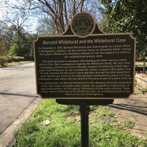This historic marker was dedicated on December 2, 2015, which was the 40th anniversary of Bernard Whitehurst, Jr.’s death, at the location where he was killed. This marker was the second one dedicated to the Whitehurst Case. The first is located in Lister Hill Plaza in downtown Montgomery, across from City Hall. Closed Ranks, my book on the Whitehurst Case, is forthcoming from NewSouth Books in September.