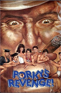 The final movie of the three, which Bob Clark was not involved in, has Porky to return. This time, the boys’ beloved basketball coach has been placing bets on sports and is behind with the bookie, who we soon find out is Porky. A side plot in this movie has Billy being caught – by Beulah Balbricker, of course – showing a reel-to-reel porn film in the audio-visual room in the library. Another side plot involves the boys’ trickery in convincing Beulah that her high school sweetheart is returning for a rendezvous. In actuality, they’ve convinced Pee Wee to meet her in a hotel room, but he is thwarted by Tommy Turner who ends up unclothed in the dark with his arch-nemesis. Yet another side plot has Meat unable to pass a science exam, which disallows him from playing basketball, but the boys find a way to entrap the mean-spirited teacher, who is having a kinky sex affair with another teacher.