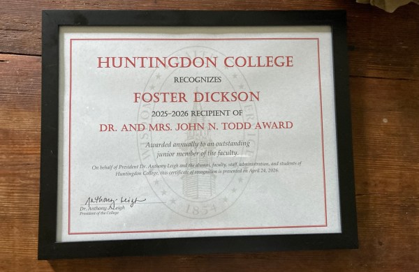 On Friday, April 24, I was pleased and honored to receive the Dr. and Mrs. John N. Todd Award at Huntingdon College’s year-end honors convocation. The award is given annually… Read more A Teaching Award, in year four →