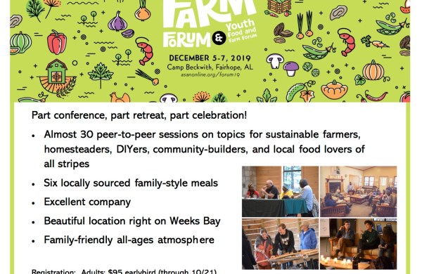 Dirty Boots: Irregular Attempts at Critical Thinking and Border Crossing offers a Deep Southern, Generation X perspective on the culture, politics, and general milieu of the 21st century. The Alabama… Read more Dirty Boots: ASAN’s Food & Farm Forum, 2019 →